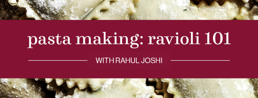 Learn to make ravioli from scratch with Chef Rahul Joshi. Master the basics of fresh pasta dough and stuffing techniques, with meat and vegetarian filling options available.