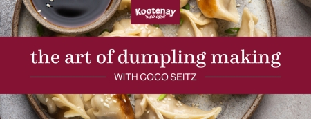 Do you love Asian style dumplings? Join Coco Seitz, founder of the Kootenay-based Mama’s Dumplings, as she shares her Chinese heritage and culture while walking you through step-by-step, the making of delicious Northern Chinese Style dumplings. This class covers how to make the wrappers and fillings from scratch + various folding techniques + her signature dipping sauce. We will make two different fillings: a meat variety with pork and celery, and a vegetarian one with egg and zucchini.